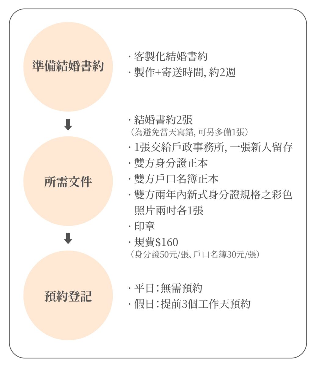完成前置準備後就可以一起帶著開心的心情前往登記,正式成為伴侶囉